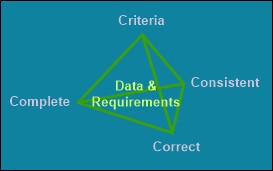 The ideas are more obvious for data. That data needs to be correct is a given. However the correctness of data can be time dependent, so it is necessary that there is a process to keep it up to date. This is a process that does not arise directly from the business model. But data does just not exist; a process has to exist to create and maintain it. Part of the completeness for a data; one or more processes are needed to keep it appropriately maintained. For data to be complete, you have to know the criteria for the processes with which it is associated. What are the processes trying to achieve and therefore what data is required. One of the issues for modern systems is that they are real (or pseudo-real) time. Data can therefore be used as soon as it entered. Data can be entered incorrectly, therefore the process is incomplete unless it can handle incorrect data. However the users need to be aware of what to do in the event of incorrect data being entered, so training is incomplete if it does not cover error scenarios. Testing is also incomplete if it does not handle error scenarios. It is usually simple to test for correct operation; incorrect operation is often more difficult and may get missed if time is tight. However once live, errors will absorb more effort than correct operation. So when defining the criteria to govern the operation of a process, testing or training, it is necessary to consider both the correct and incorrect scenarios to produce a robust system. The requirement to 'get it right first time' and detect errors in data before being released for use will significantly aid the robustness of any process and system. Very simple rules can often yield significant benefits.